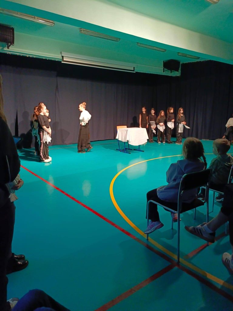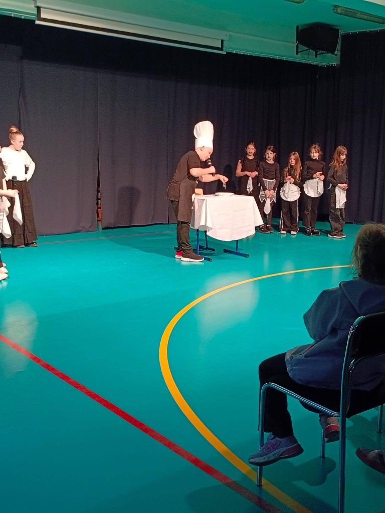 Już na samym początku przenieśliśmy się do świata wyobraźni dzięki wyjątkowej inscenizacji wiersza „Włos w rosole” w wykonaniu klas trzecich – było kreatywnie, zabawnie i bardzo inspirująco!
