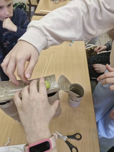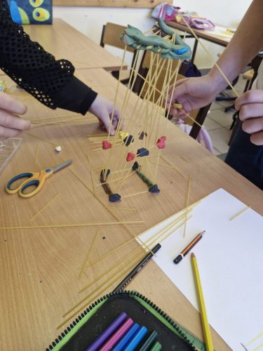 Zajęcia rozwijające z matematyki w nurcie STEAM to fascynująca podróż łącząca naukę z kreatywnością. Uczniowie nie tylko rozwiązują zadania, ale przede wszystkim działają – projektują i budują mosty, tory oraz różnorodne konstrukcje, testując ich wytrzymałość i funkcjonalność. Ważnym elementem zajęć jest także rytmika – dzieci uczą się poprzez ruch, klaskanie, wystukiwanie rytmów i tworzenie sekwencji dźwiękowych, co pomaga im lepiej zrozumieć wzory, powtarzalność i zależności matematyczne. Połączenie aktywności konstrukcyjnych z rytmiką rozwija zarówno logiczne myślenie, jak i poczucie rytmu, koordynację oraz kreatywność, sprawiając, że nauka staje się angażującą i pełną radości przygodą.