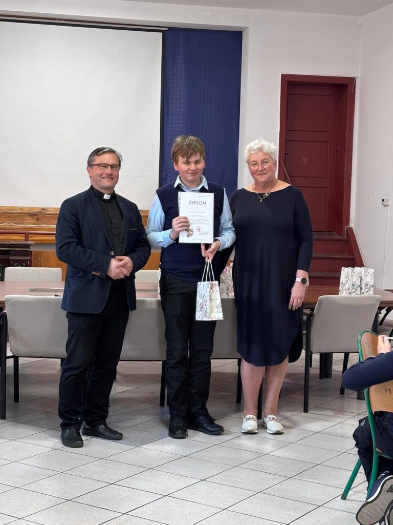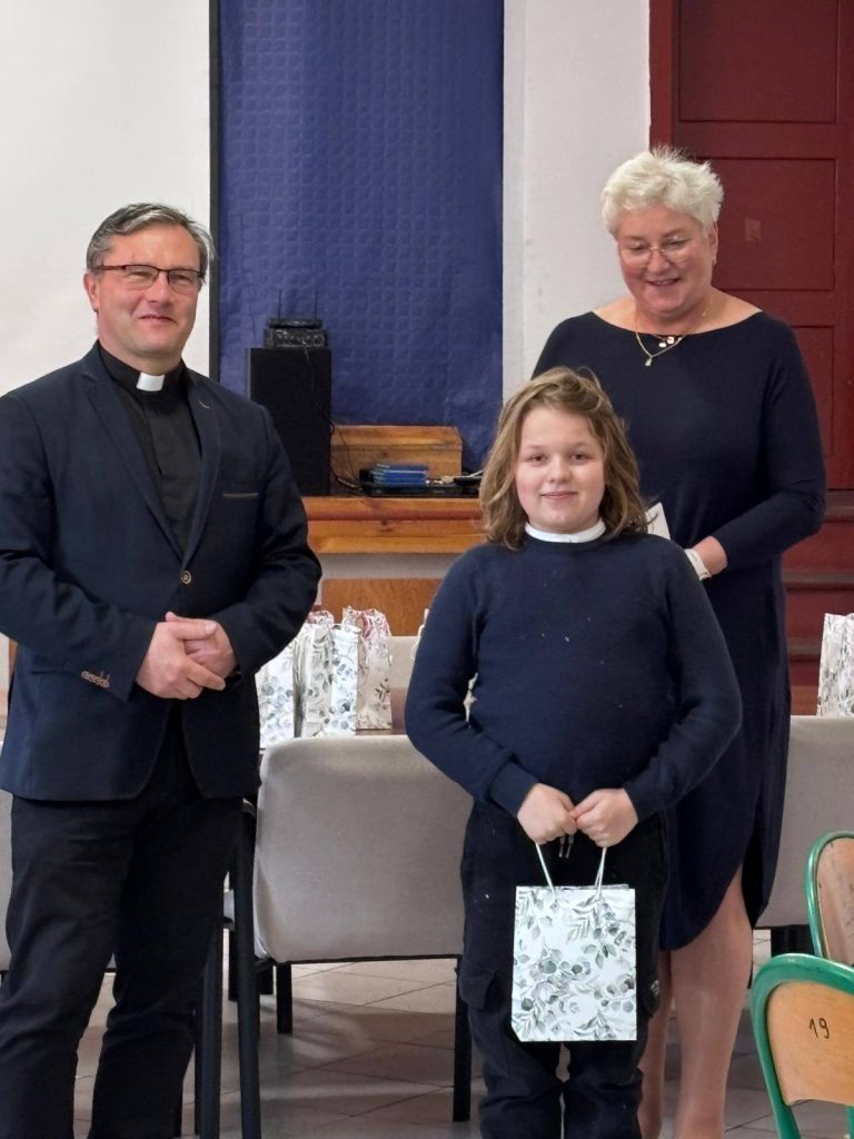 W czwartek 19 marca w parafii Nawiedzenia NMP w Brzezince odbyło się podsumowanie Konkursu Biblijnego dla szkół podstawowych.Uczestnicy otrzymali pamiątkowe upominki a najlepsi z najlepszych dyplomy i cenne nagrody.Naszą szkołę reprezentowali Piotr Rajda-uczeń klasy 5 A, który bardzo dobrze napisał etap szkolny i rejonowy konkursu oraz Łukasz Witkowicz-zdobywca III miejsca w etapie rejonowym.Serdecznie gratulujemy ![]()